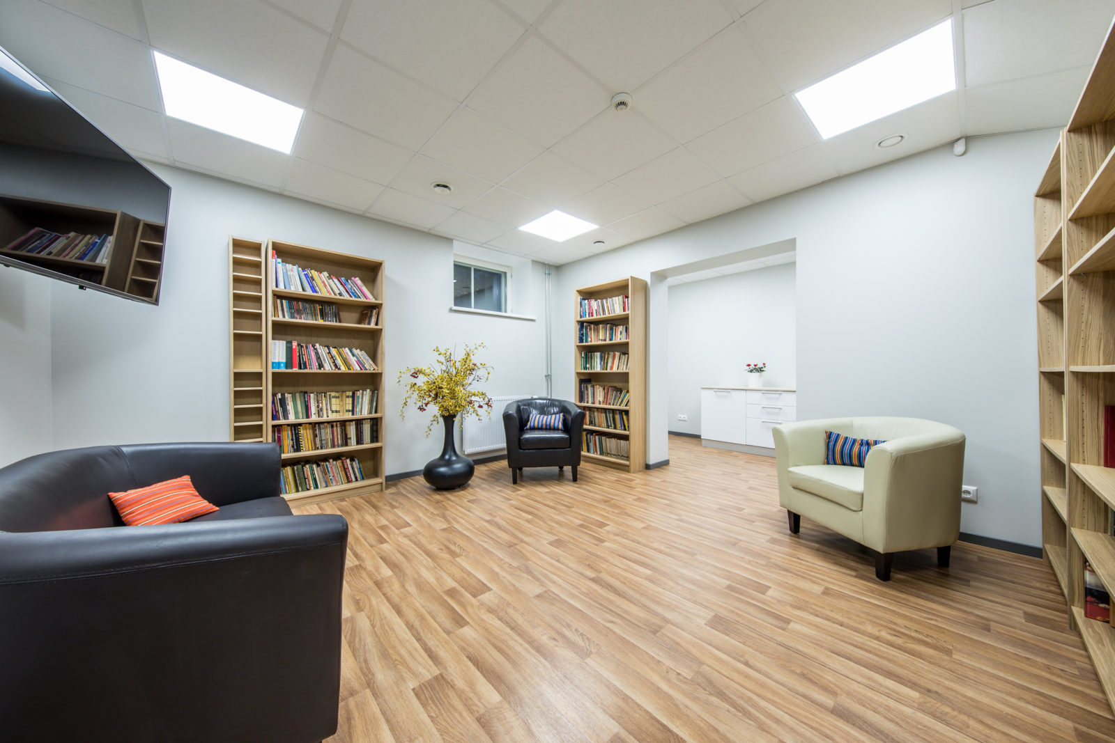 Raamatukogu, puhkeruumi ja koduköögi kasutamine, värsked ajalehed ja interneti kasutamise võimalus
