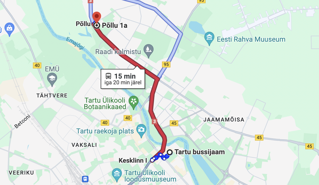 Bussijaamast pääseb meie juurde otse bussiliinidega nr 4, 8 ja 9 meie bussipeatus on „Põllu“