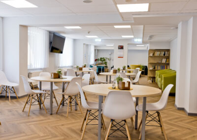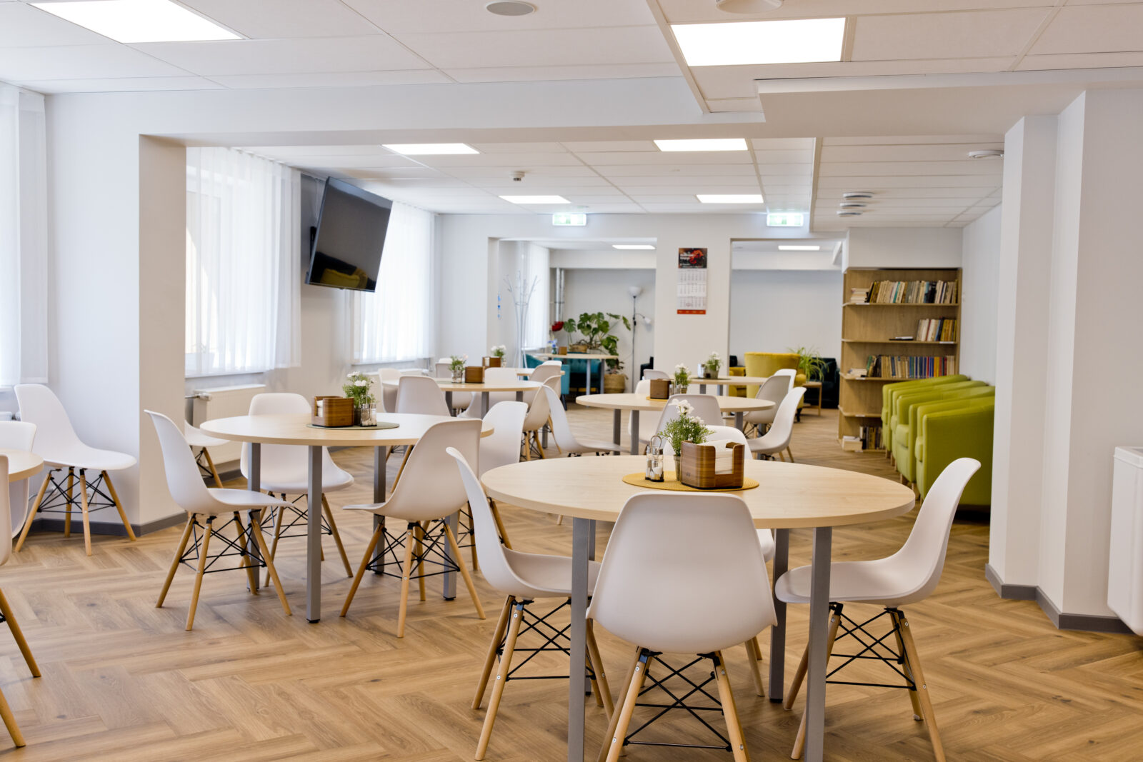 Raamatukogu, puhkeruumi ja koduköögi kasutamine, värsked ajalehed ja interneti kasutamise võimalus